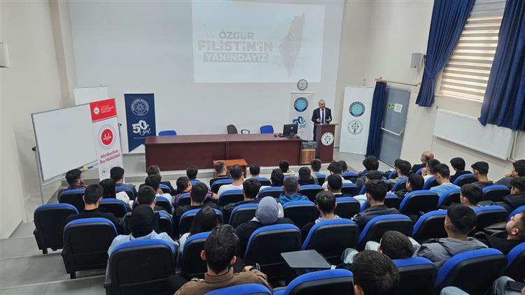 İlçe Müftümüz Ömer BOZKURT, Büyükorhan Meslek Yüksekokulu öğrencilerine yönelik düzenlenen programda “Gazze/Filistin bağlamında boykotun önemi” konulu bir konferans gerçekleştirdi.