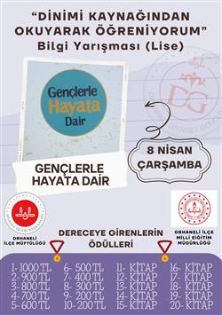 İlçemizde dört yıldan beri lise ve ortaokullar için ayrı ayrı kitap belirleyerek “Dinimizi Kaynağından Okuyarak Öğreniyoruz” projesi kapsamında ödüllü bilgi yarışmaları tertip ediyoruz.