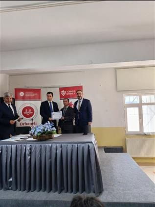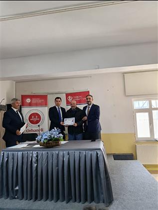Kaymakamımız Sayın Muhammed Furkan Tuna Camiler ve Din Görevlileri Haftası münasebetiyle görevinde başarı gösteren personellerimize başarı belgesi takdim etti.