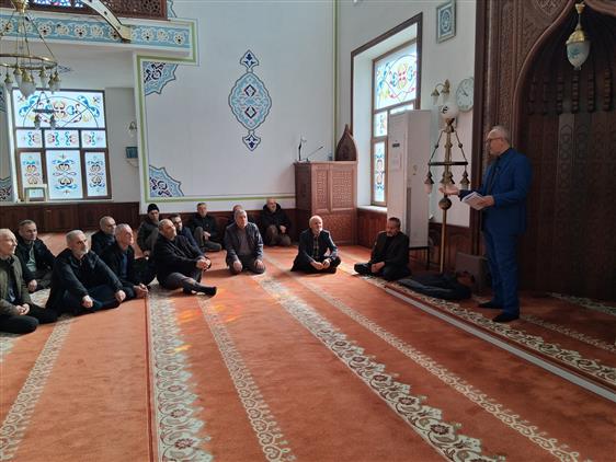 Hacı adaylarına yönelik bilgilendirme seminerleri, Müftülük Toplantı Salonu ve Hürriyet Camii’nde, İlçe Müftüsü Sn. Yasin YILDIZ ve Şube Müdürü Lütfi ELMAS tarafından verildi.