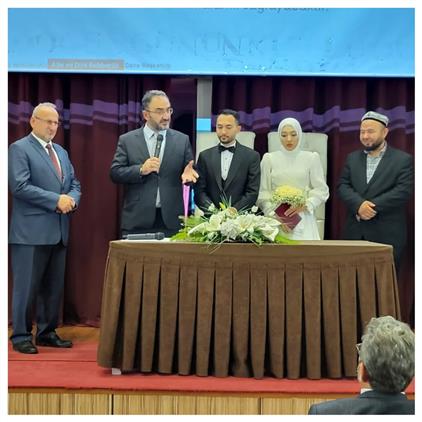 Osmangazi Müftülüğü Konferans Salonu'nda düzenlenen törende, Muradiye Camii İmam Hatibi Lütfi Taşçı Kur’an-ı Kerim tilavetiyle gönülleri mest etti. Ardından İl Müftümüz Yavuz Selim Karabayır, Doğu Türkistanlı kardeşlerimizin nikahını kıyarak genç çifte Kur’an-ı Kerim ve Türk Bayrağı hediye etti.