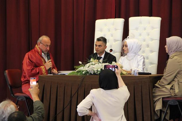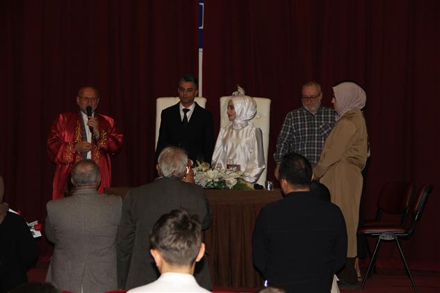 Düzenlenen törene, Osmangazi İlçe Müftümüz Mehmet Uzun başta olmak üzere, kurum personelimiz ve davetliler katıldı. Aile yakınlarının hazır bulunduğu merasimde Müftü Mehmet Uzun, genç çiftin nikâhını kıyarak hayırlı bir yuva kurmaları için dua etti.