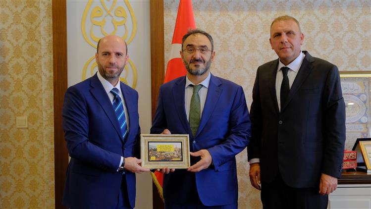 Kuzey Makedonya Cumhuriyeti İslam Birliği Teşkilatı Müftüleri Bursa İl Müftüsü Yavuz Selim Karabayır’ı makamında ziyaret etti. Üsküp Bölge Müftüsü Kenan İsmaili ve beraberindeki müftüler heyeti, nazik kabulleri için İl Müftüsü Karabayır’a teşekkürlerini arz ederken; Müftü Karabayır da gönül coğrafyamızdan çok değerli meslektaşlarımızı, can kardeşlerimizi şehrimizde misafir etmekten onur duyduklarını heyet üyelerine aktardı. Ziyaret karşılıklı hediye takdimi ve hatıra fotoğrafı çekimi ile sona erdi.
