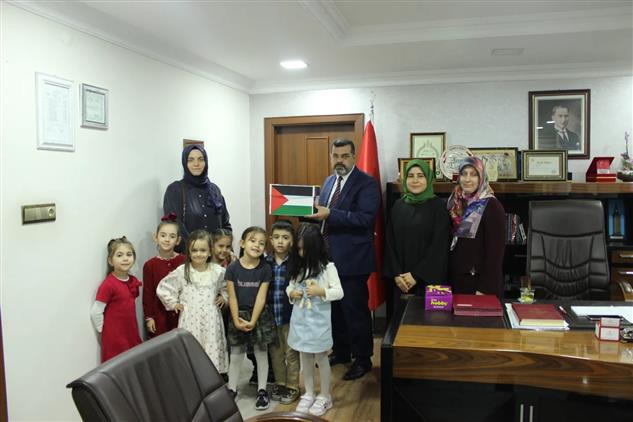 İlçemiz Müftülüğüne bağlı Darus Selam 4-6 Yaş grubu Kur’an Kursu’nda eğitim gören öğrenciler, İsrail’in bombalı saldırıları sonucunda binlerce masum insanın vefat ettiği Gazze’ye yönelik olarak “Özgür Filistin’in Yanındayız” sloganıyla başlatılan kampanyaya harçlıklarıyla destek verdi. Minik öğrenciler kocaman yürekleri ile doldurdukları kumbaradan çıkan 27295 TL yardımı Filistin’e ulaştırılmak üzere Türkiye Diyanet Vakfı Yıldırım Şube başkanı ve İlçe Müftüsü Ahmet Durmuş’a teslim ettiler.